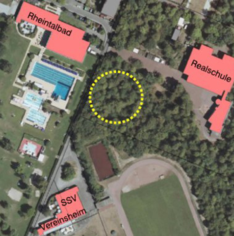 Der realisierte Standort hat im Vergleich zu dem ursprünglich vorgesehenen, östlich von Wiesental, nicht einmal den Anschein eines Waldkindergartens. Der Platz ist umgeben von Schwimmbad und Sportplatz, sowie der Realschule, die durch die Erweiterung den "Wald" des Kindergartens noch mehr einschränken wird. Wald im eigentlichen Sinne, mit viel Platz und ausgewachsenen Bäumen ist nicht gegeben. Vor Ort handelt es sich um Jungbäume, an denen nicht einmal eine Schaukel befestigt werden kann. Er liegt direkt neben der Straße und, auch wenn diese nicht viel befahren ist, bleibt abzuwarten, wann es zum ersten (Beinahe)Unfall kommt. Spielende Kinder achten nicht immer auf den Verkehr. Die Betreuer haben eine große Verantwortung. Es bleibt abzuwarten, wann die Forderung nach einem Zaun aufkommt. Und bald wird die Spielmöglichkeit und das Gefühl eines Aufenthalts im Wald durch die Baustelle der Schulerweiterung und dem damit verbundenen Lärm noch mehr eingeschränkt.